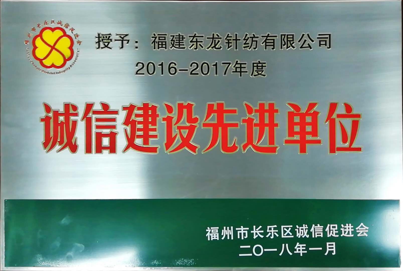 長(zhǎng)樂(lè)區(qū)誠(chéng)信建設(shè)先進(jìn)單位/2018-09-04